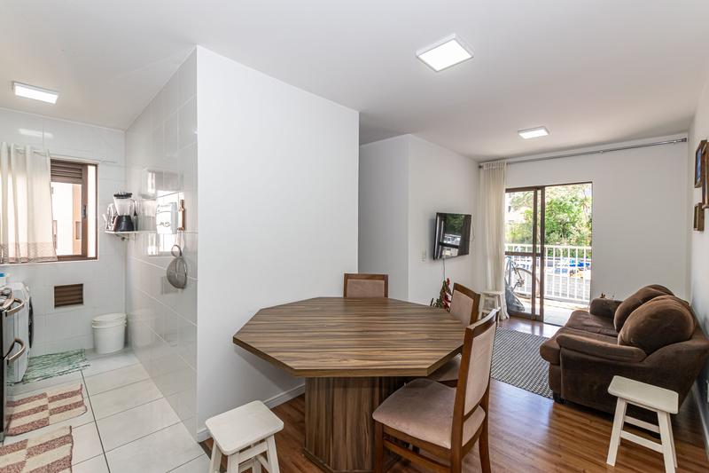 Circulação, sala de estar/jantar, 02 quartos, cozinha, área de serviço, BWC social com box blindex, sacada com churrasqueira a carvão.