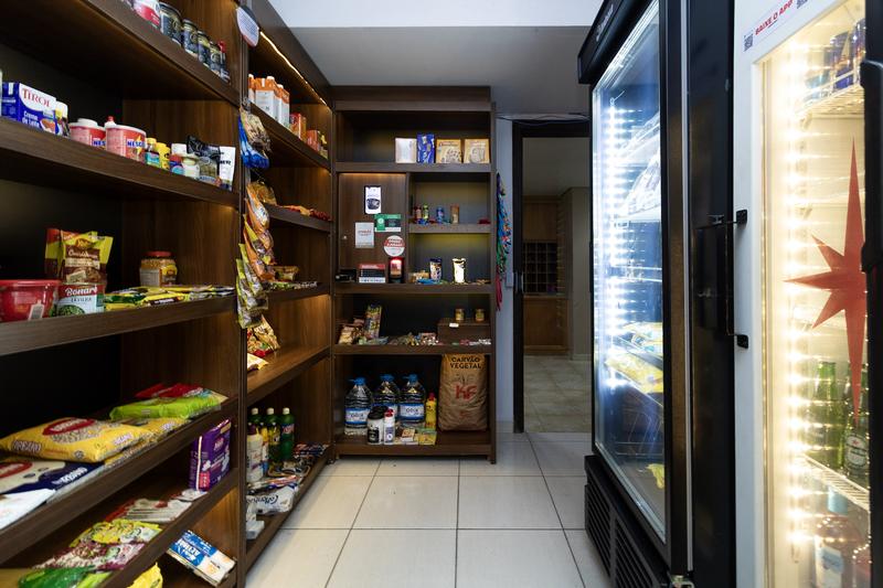 Mini mercado interno, oferecendo praticidade para compras rápidas.