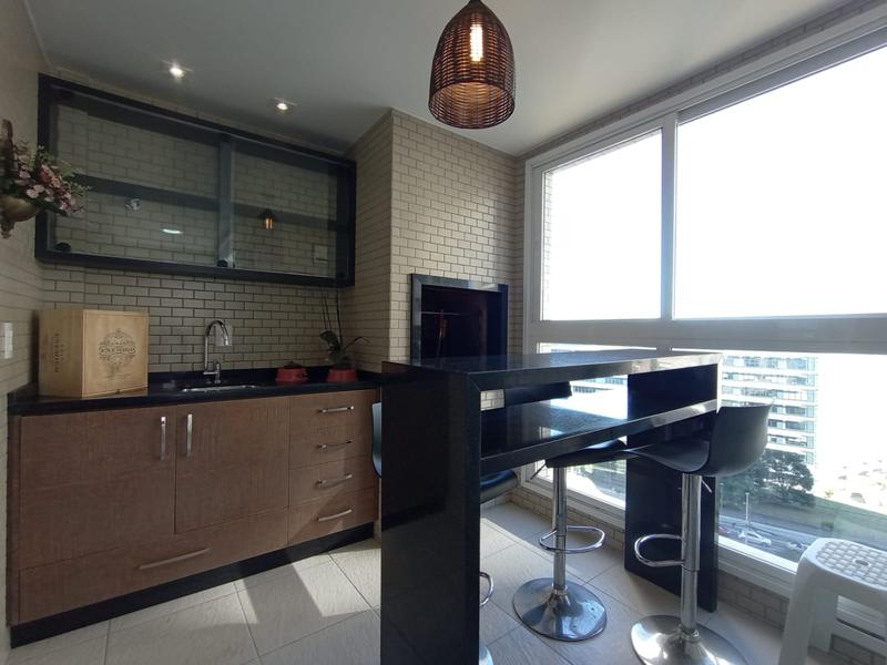 01 sacada estilo Gourmet com churrasqueira e fechada em vidro;