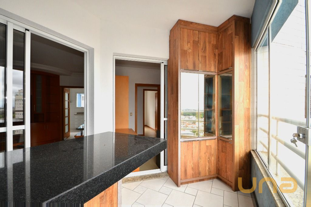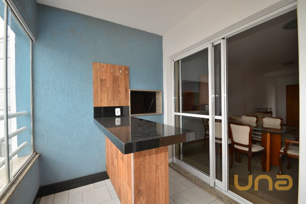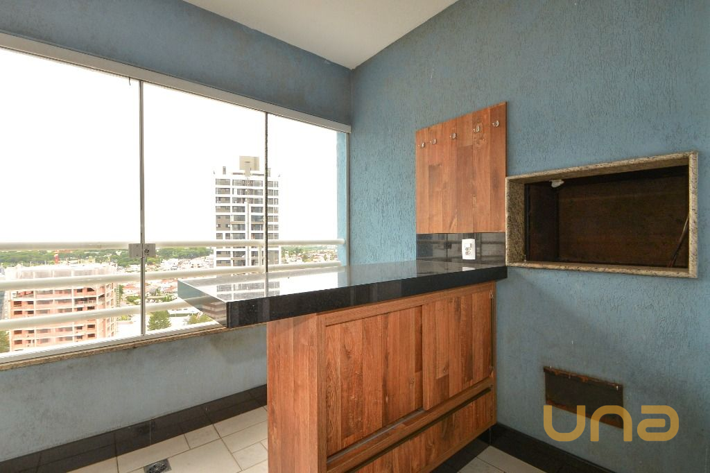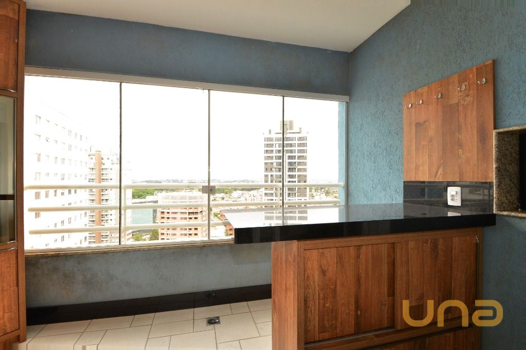 – Sacada com churrasqueira, bancada, armário-bar e fechamento em vidro temperado