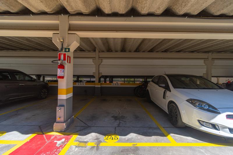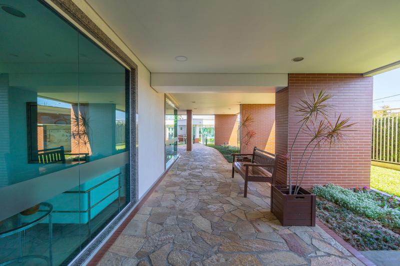 – Recuo em frente ao edifício com pista de desaceleração e vagas públicas de estacionamento;
