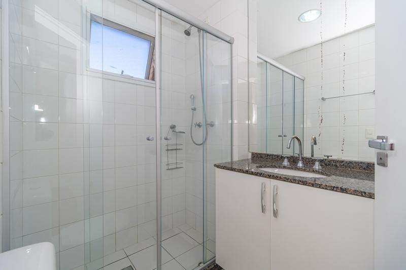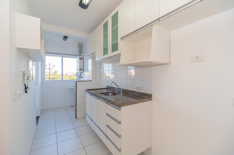 – Cozinha com armários embutidos, pia em granito e área de serviço conjugada;