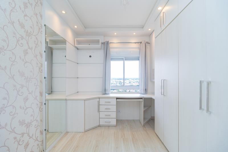 O imóvel possui 3 quartos, sendo uma suíte com armários. Os demais dormitórios também contam com armários e boa distribuição de espaço, incluindo opção para quarto de casal ou ambiente de estudos.