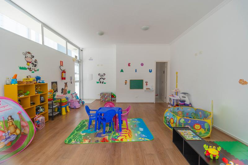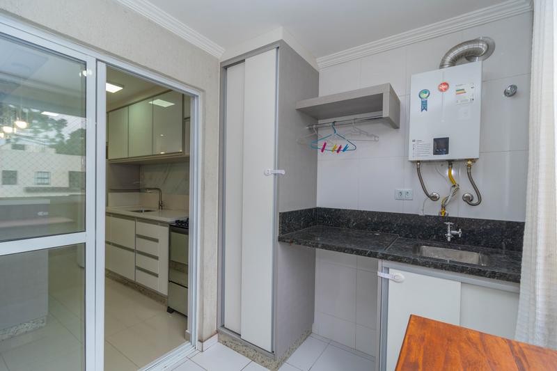 – Varanda fechada com armários, tanque embutido, espaço para máquina de lavar com abertura frontal, churrasqueira e pia com armário,