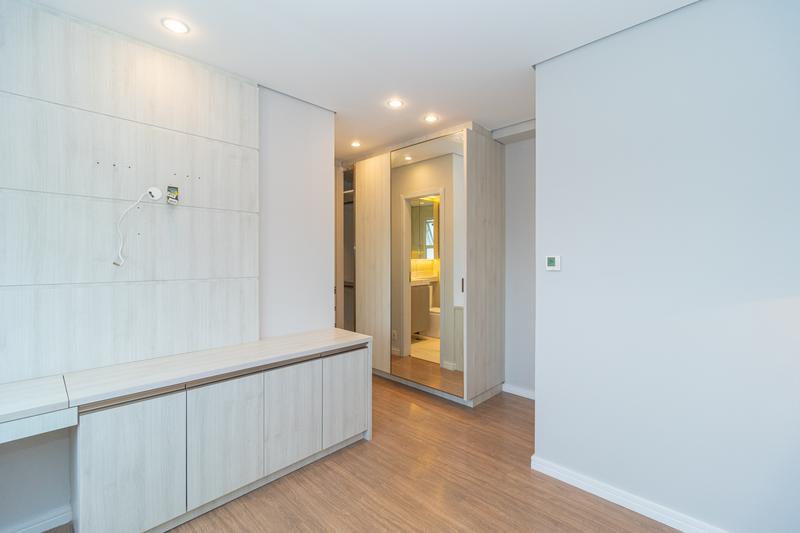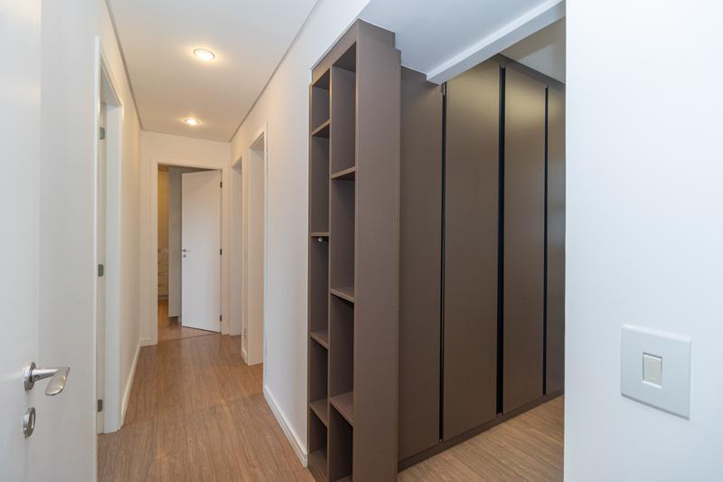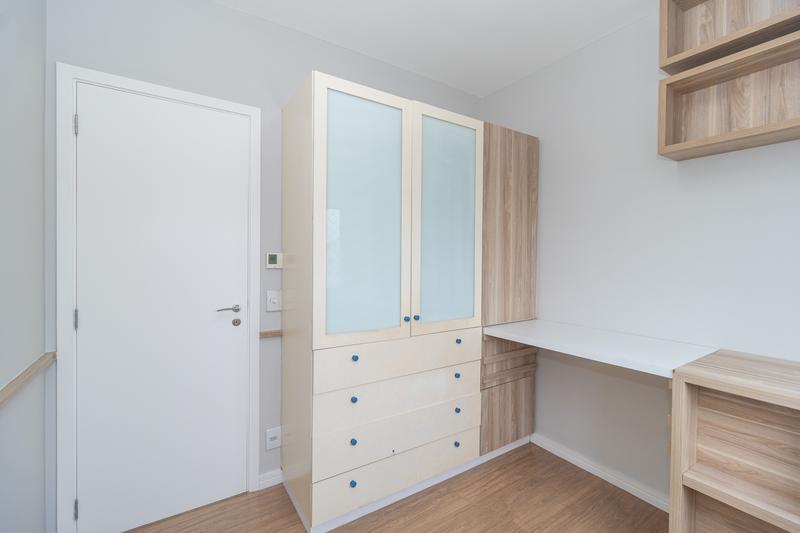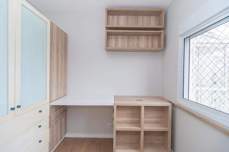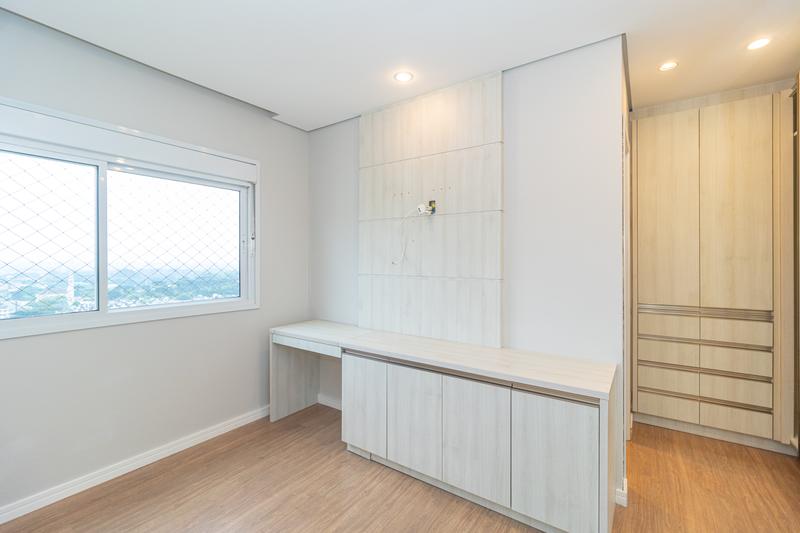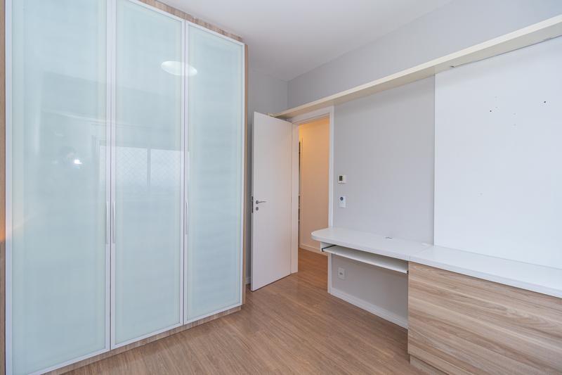 – 3 Quartos, sendo uma suíte com armários planejados, cabeceira, mesinhas de cabeceira e painel para TV, outro com armário bancada para estudos e espaço para cama de solteiro, e um com armário planejado e espaço para cama de casal, piso aquecido em todos os quartos,
