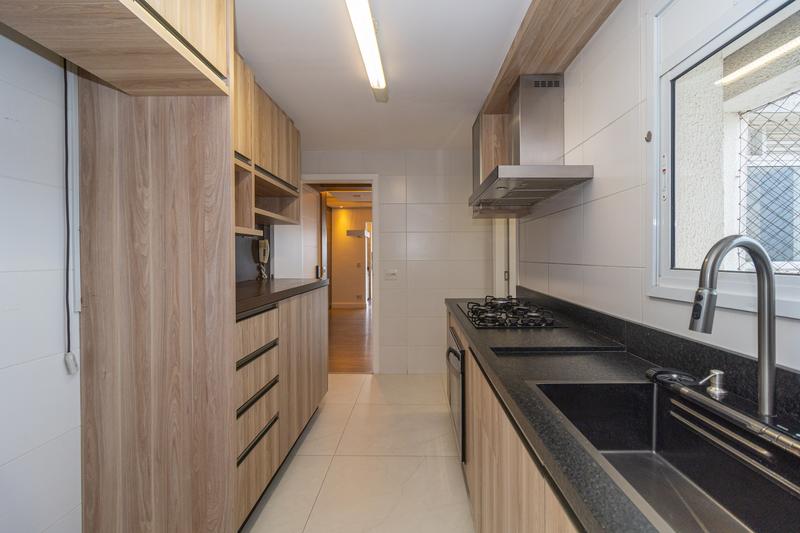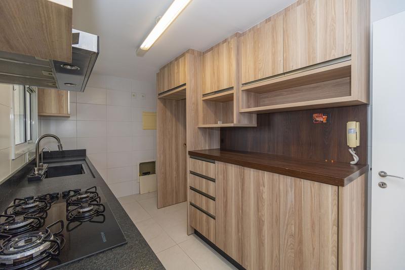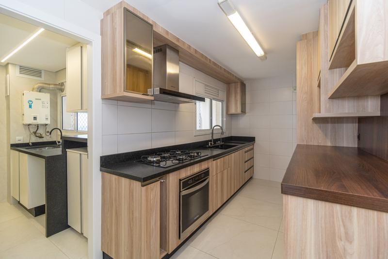 – Cozinha com armários planejados, cooktop, coifa e forno embutido,