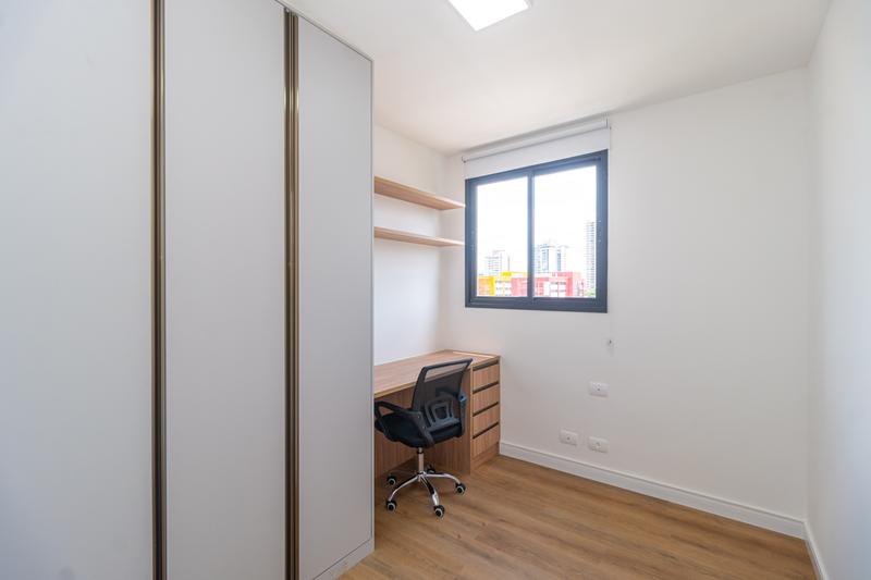 – 2 Quartos, um deles com armário planejado e bancada para estudos, outro com armário planejado, cama de casal, cabeceira, mesinha de cabeceira um painel com TV.