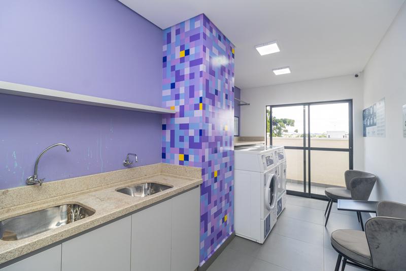 – O imóvel dispõe ainda de espaço reservado para lavanderia, com máquina lava e seca, armários e tanque embutido.