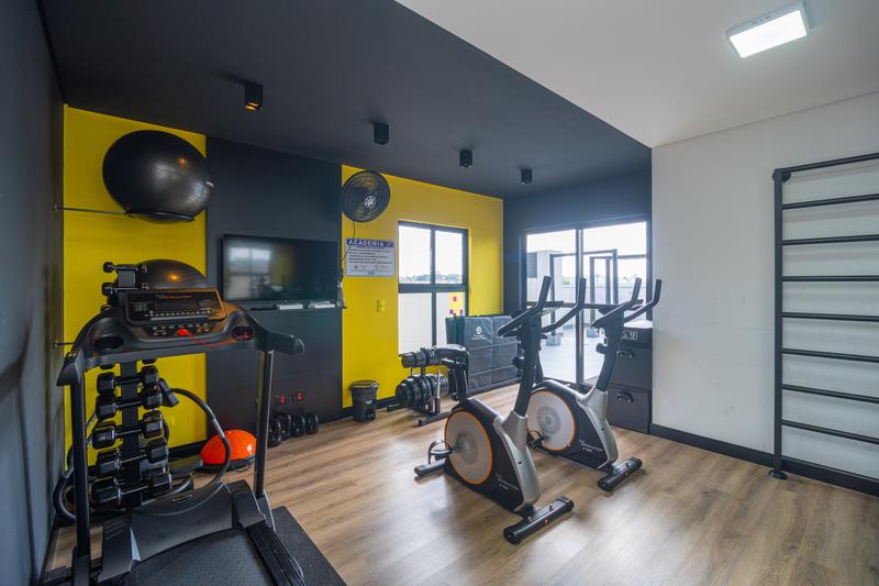 – Na área social, conta com mesa fixa para duas pessoas, sofá, rack com painel e uma bancada versátil, ideal para estudos ou home office.