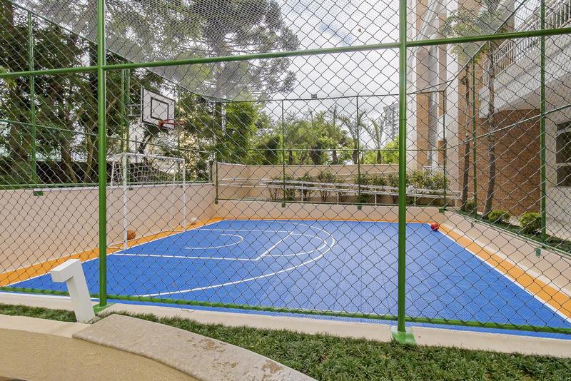 Áreas de lazer com piscina, quadra poliesportiva e playground