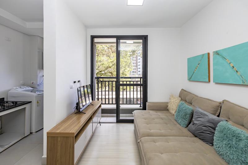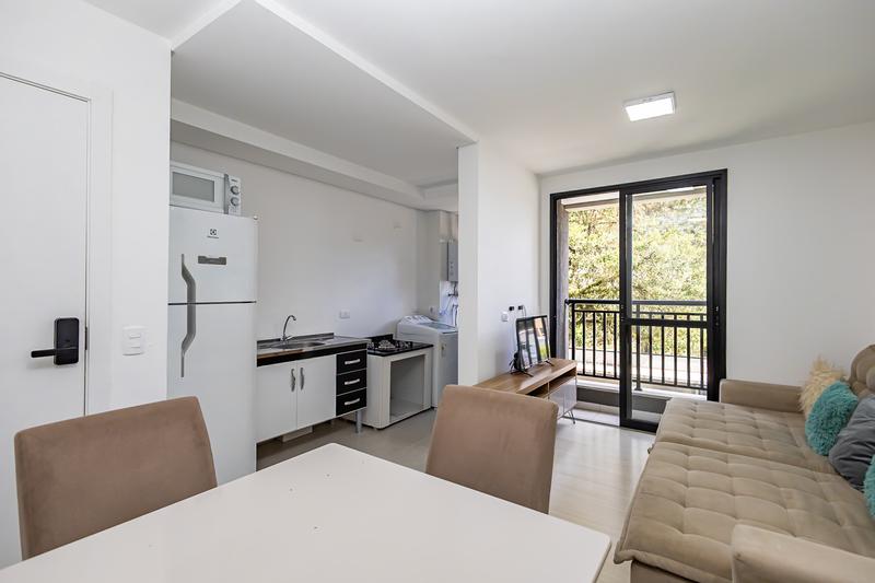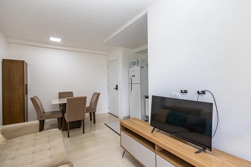Apartamento todo mobiliado no condomínio Sou Ecoville, prédio novo entregue em Dezembro de 2024, próximo à Universidade Positivo. Planta de 44,94m2 privativos, distribuídos em 2 quartos, banheiro social com ventilação natural, cozinha, sala com acesso a sacada com churrasqueira à carvão e uma vaga de garagem livre. Preparação para ar condicionado. Aquecimento a gás. Condomínio com portaria 24 horas, piscina, playground, academia, salão de festas, espaço pet, área gourmet e muito mais. Agende agora sua visita e não perca essa oportunidade.