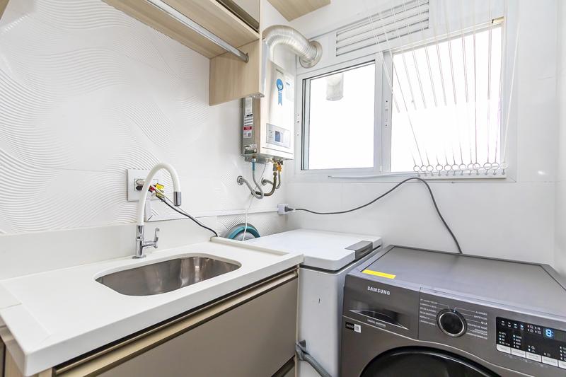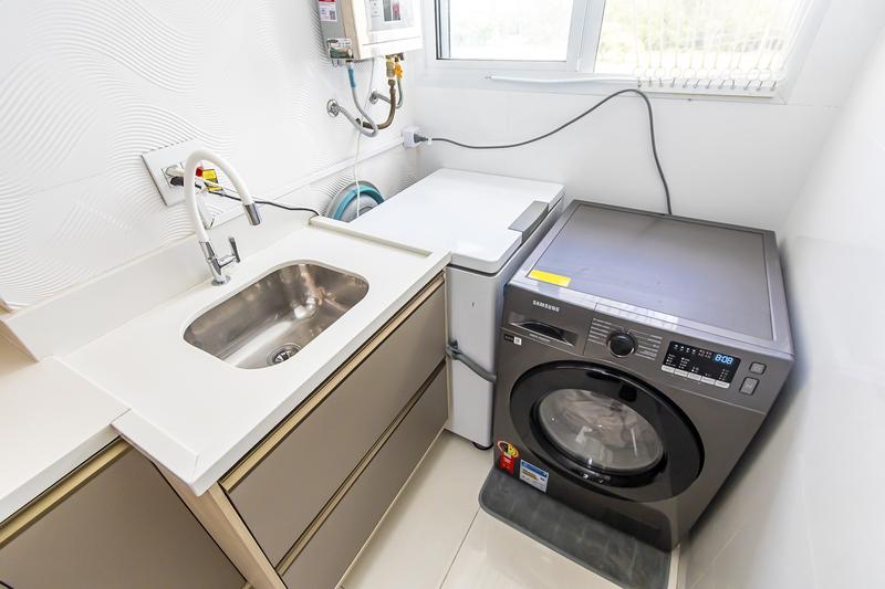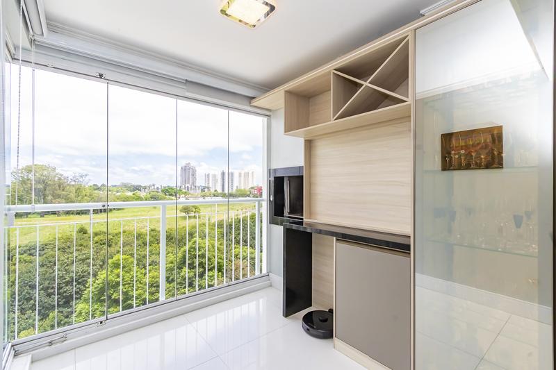 A sacada com churrasqueira a carvão, é outro destaque, convidando a momentos de descontração e confraternização em família ou com amigos.
