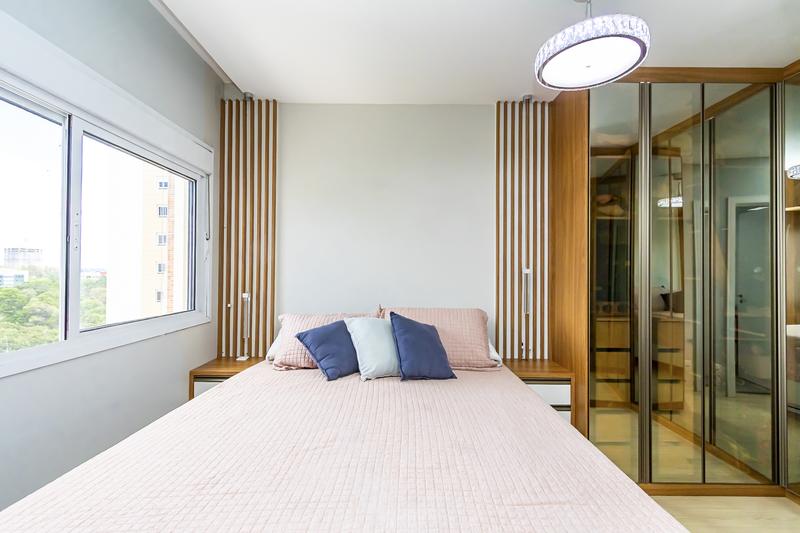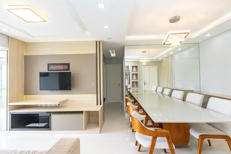 Conta com armários planejados nos dormitórios que garante organização e praticidade no dia a dia. Parede da suíte com isolamento acústico. Permanecerão no imóvel lustres e iluminação em Led inclusive nos armários.