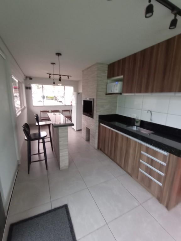 A cozinha estilo americana se integra harmoniosamente com a área de serviço.