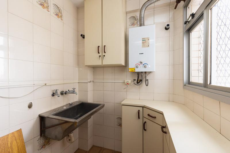Área de serviço independente, com tanque e armários, garantindo praticidade no dia a dia.