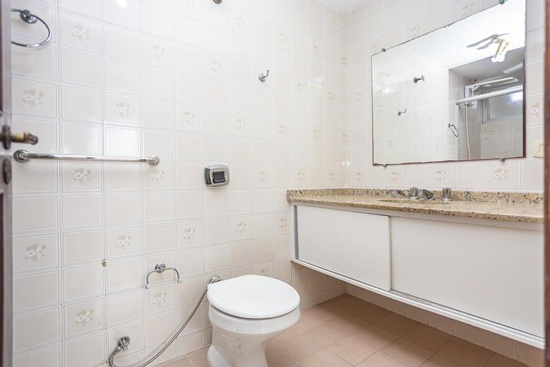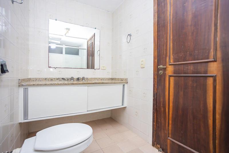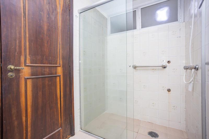 – Banheiro social com armário, espelho e box em blindex,