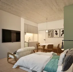 Apartamentos que Inspiram Liberdade Nossas unidades Studio e Studio Garden, de 18 a 26 m², foram projetadas para diferentes estilos de vida. Desde Studios com pé-direito duplo até unidades garden com áreas externas privativas, cada espaço oferece conforto, amplitude e praticidade. Com acabamentos de alta qualidade e tecnologia de automação residencial, seu novo lar é moderno e funcional.