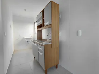 02 dormitórios, banheiro social, sala, cozinha conjugada com lavanderia. Será instalado pia com balcão na cozinha, banheiro com box de vidro, vaga de estacionamento n º174.