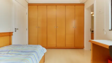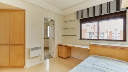 Na área íntima, o imóvel conta com um escritório amplo, para o conforto de um home oficce e 3 suítes. Que já estão equipadas com camas e armários sob medida, enquanto a suíte master se destaca sua excelente cama, por seu amplo closet, banheiro com duas cubas e uma banheira de hidromassagem, ideal para relaxar com conforto e privacidade.