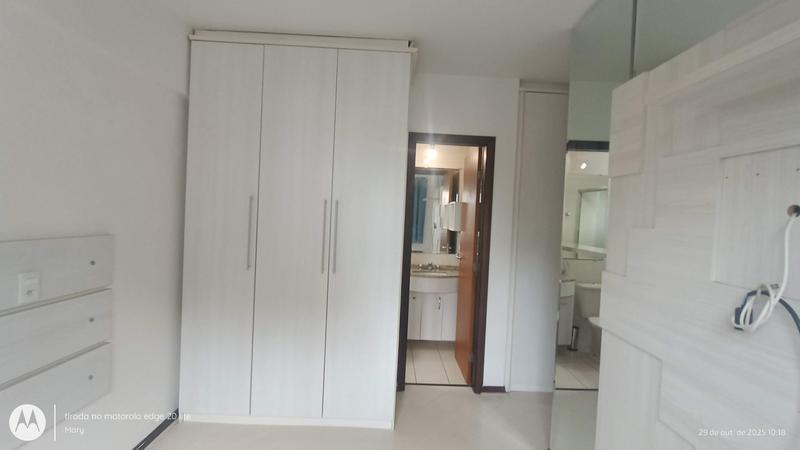 – Suíte com armários planejados, cabeceira, papel de parede, cortinas e tela de proteção.