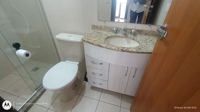 02 Banheiros, sendo um suíte e um social, ambos com armários, pia em granito, box de vidro, espelho e ducha.