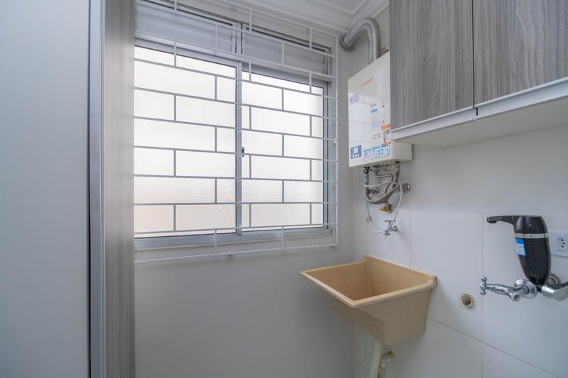 – Lavanderia em anexo a cozinha com divisório em vidro, com armários e tanque,
