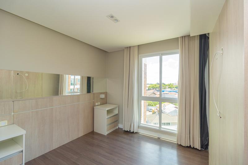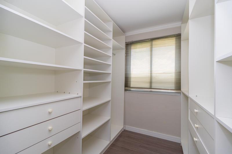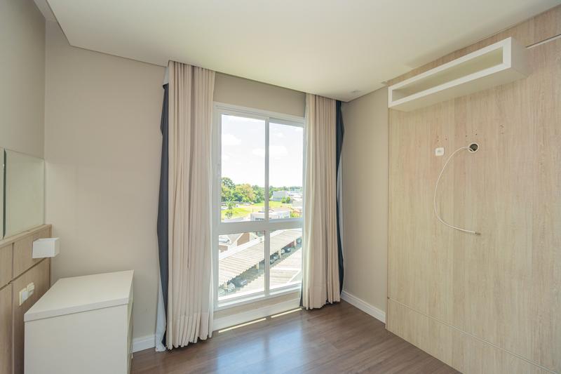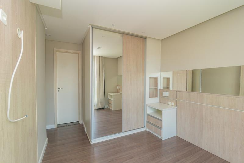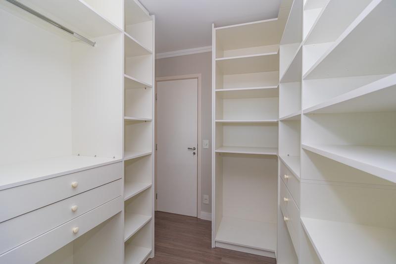 – 3 quartos, sendo um transformado em closet, um vazio e outro uma suíte com cabeceira, mesinhas de cabeceira e um painel para TV,