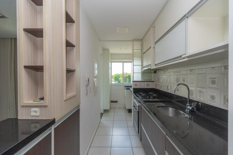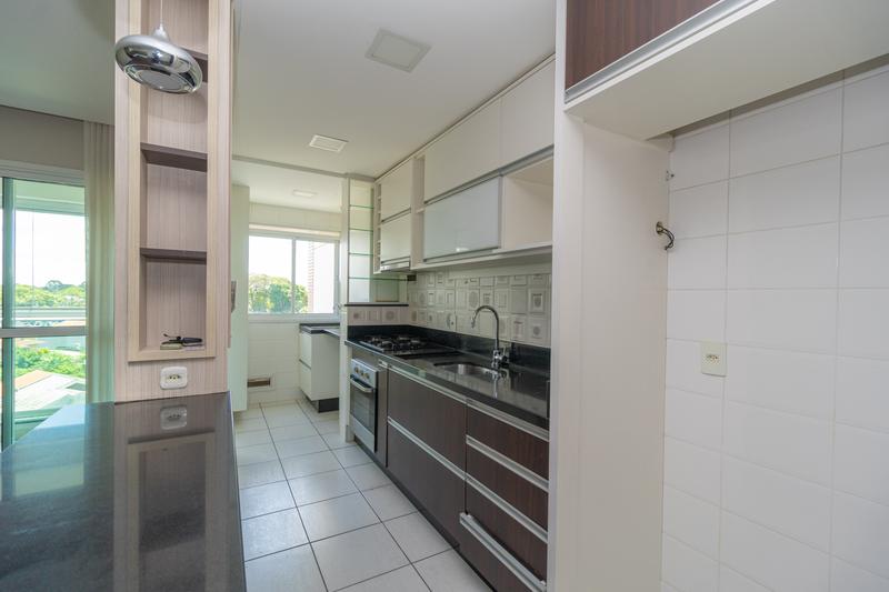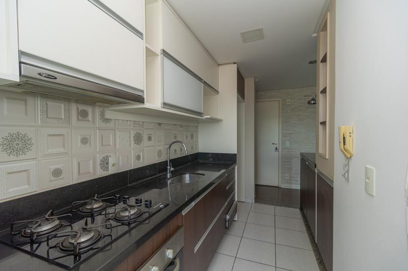 – Cozinha com armários planejados, cooktop, depurador e forno embutido,
