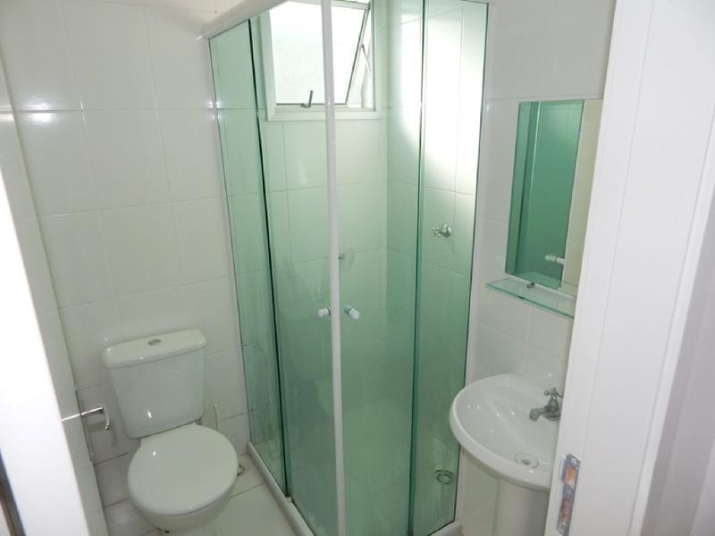 Banheiro social estruturado com box em vidro garantindo praticidade técnica