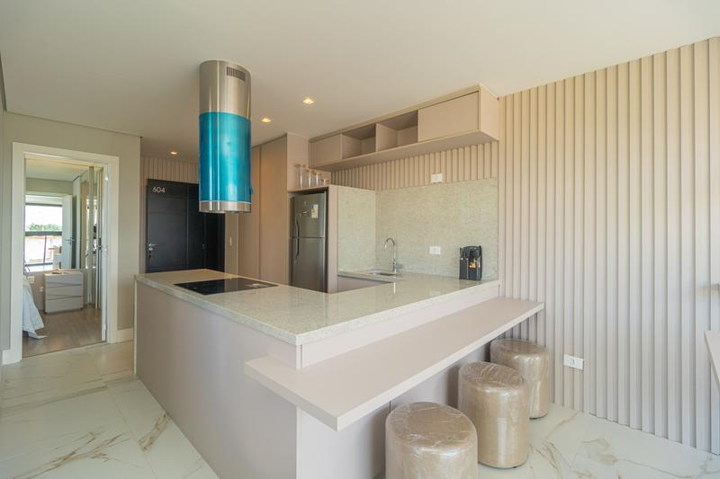 O apartamento é bem iluminado e possui uma planta bem distribuída, contando com sala para dois ambientes, equipada com mesa e cadeiras, sofá e sacada fechada com churrasqueira. A cozinha dispõe de armários planejados, fogão cooktop embutido, geladeira e exaustor, e a área de serviço é conjugada com máquina de lavar roupa. O imóvel possui dois dormitórios, sendo um deles uma suíte, equipada com painel de TV, cabeceira de cama, criados-mudos, ventilador de teto e um closet..