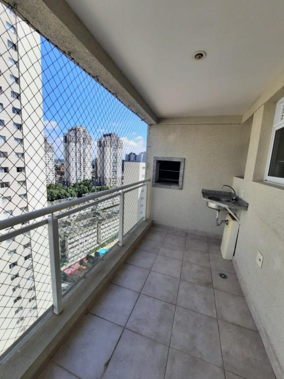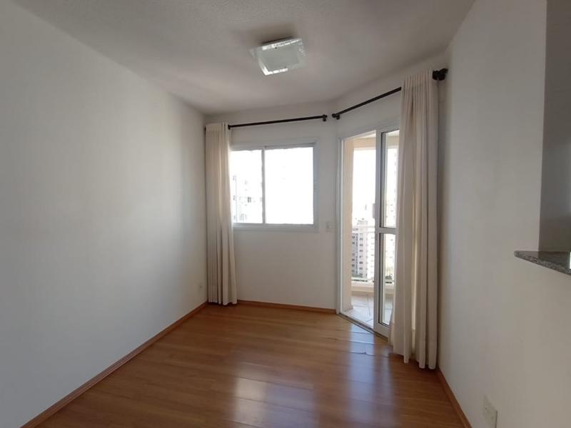 * Apartamento com piso laminado, uma sala ampla e sacada com churrasqueira.