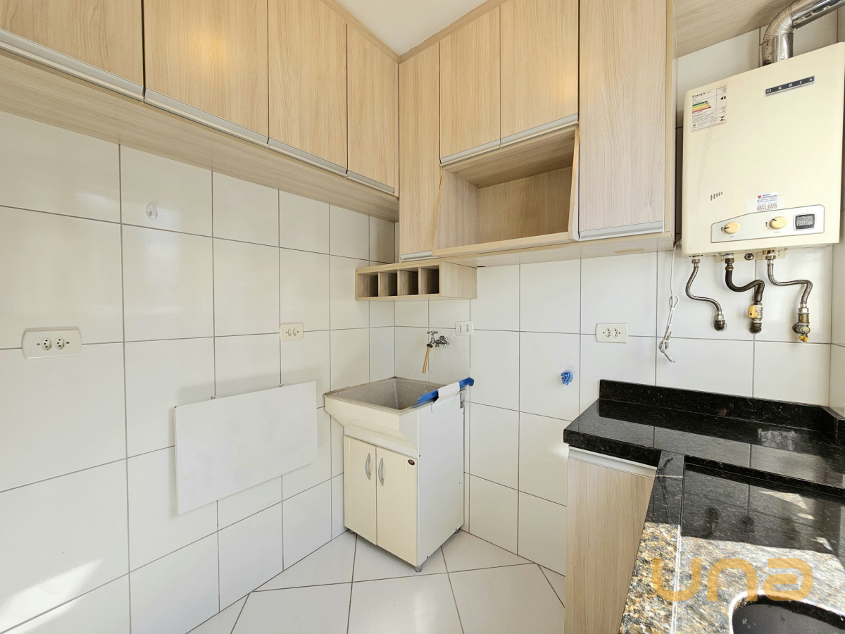Contendo 1 quarto, sala para 2 ambientes com armário, banheiro social com armário, box em vidro temperado e espelho, cozinha com armário, área de serviço com aquecedor de passagem e uma vaga de garagem individual.