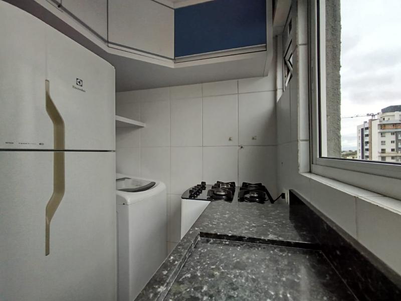 * Cozinha equipada com armários, fogão, geladeira e máquina de lavar roupa;