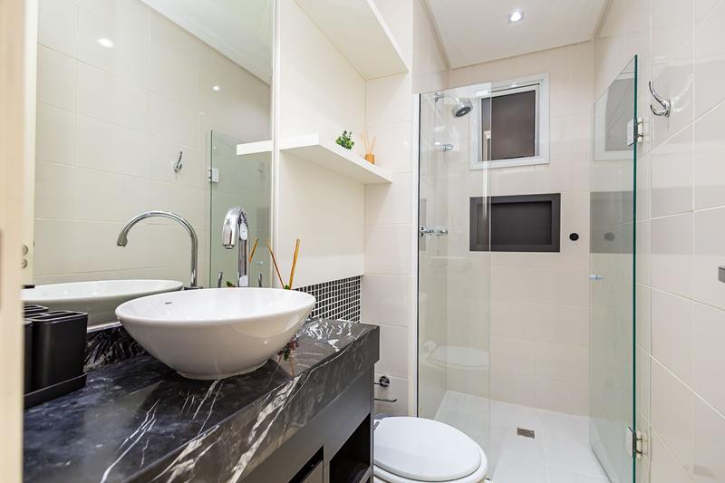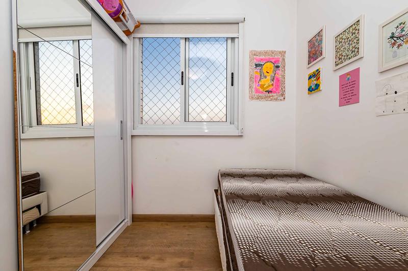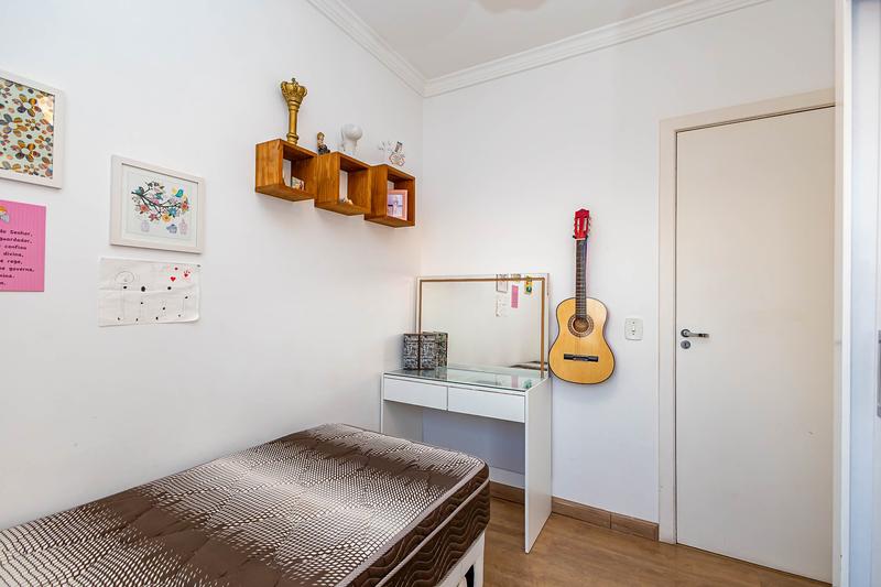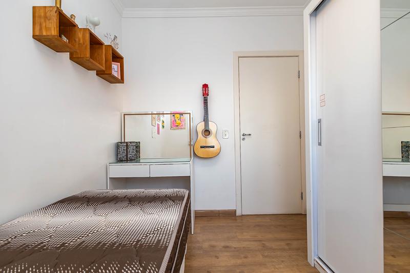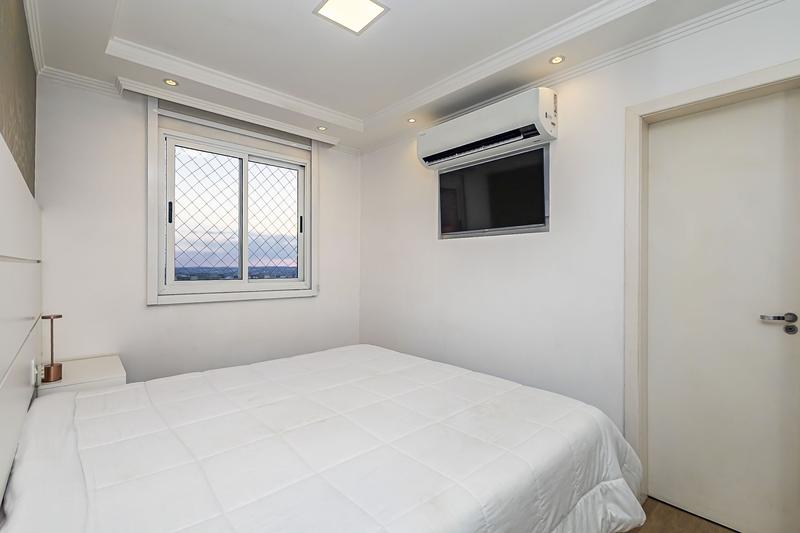 2 quartos, sendo 1 suíte com armários planejados e ar-condicionado