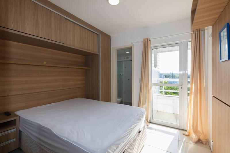 Sacada privativa posicionada no dormitório garantindo ventilação e claridade
