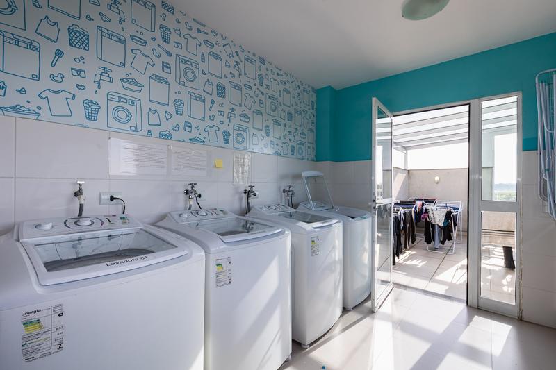 Lavanderia coletiva equipada oferecendo praticidade e economia doméstica