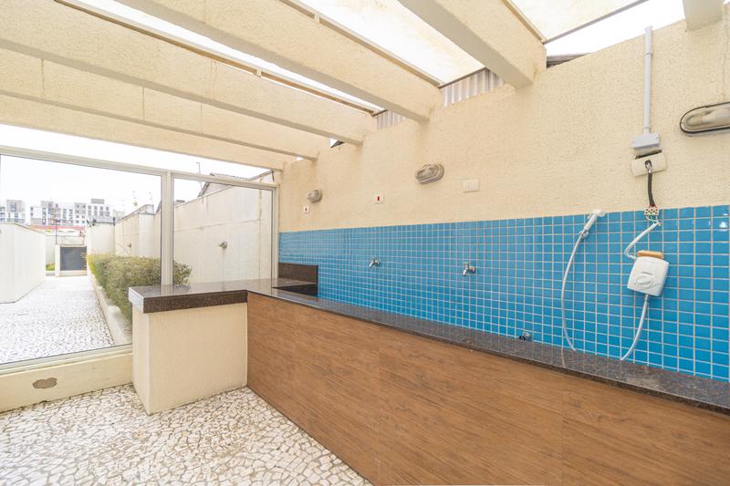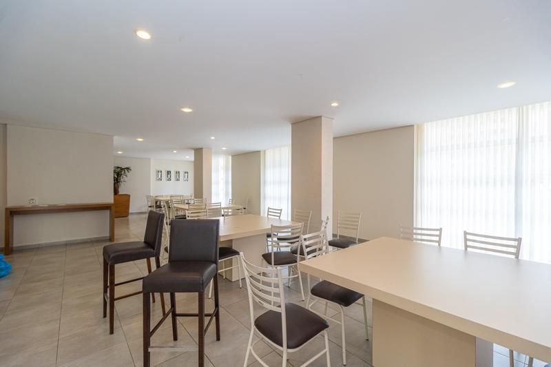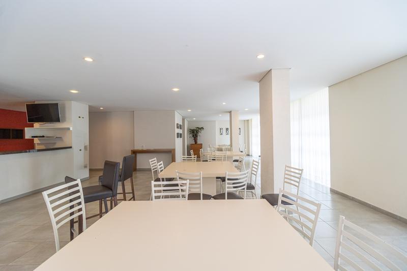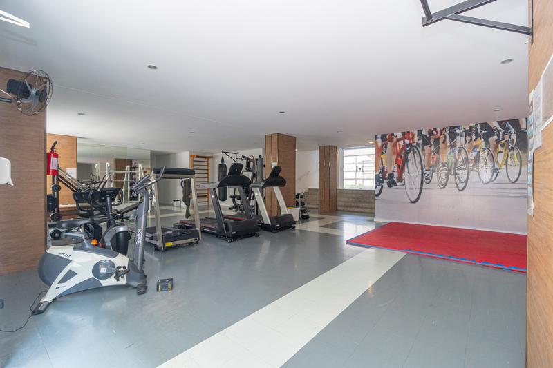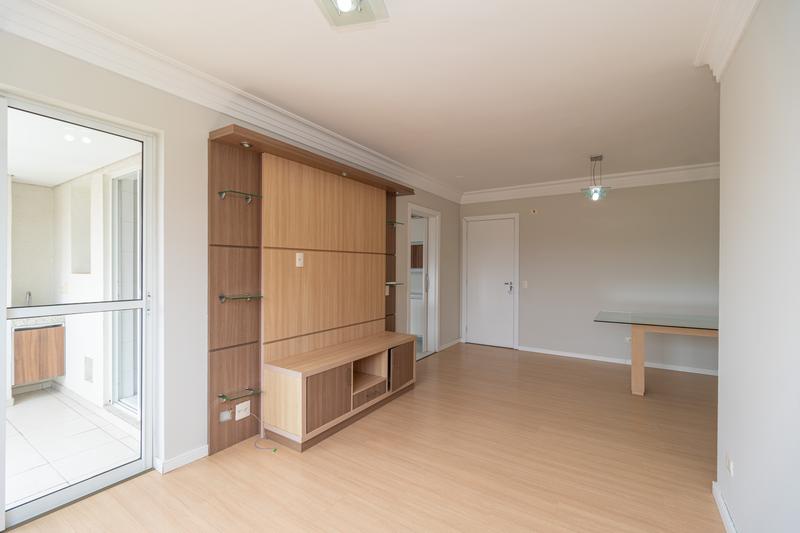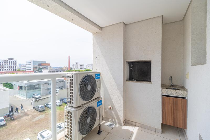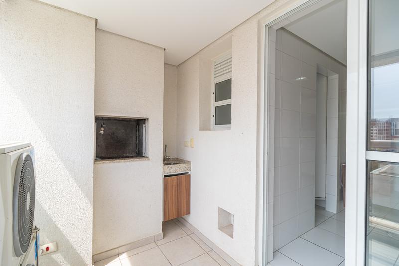 – Sala ampla para 2 ambientes, mesa com tampo de vidro, rack e painel para Tv, ar condicionado, parede com espelho, acesso para varanda com churrasqueira e pia,