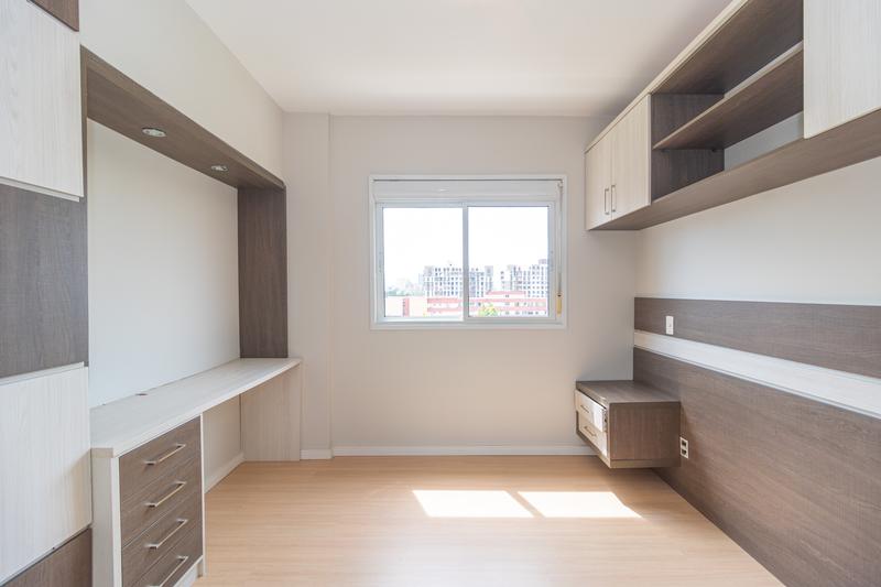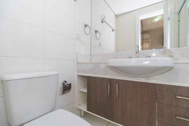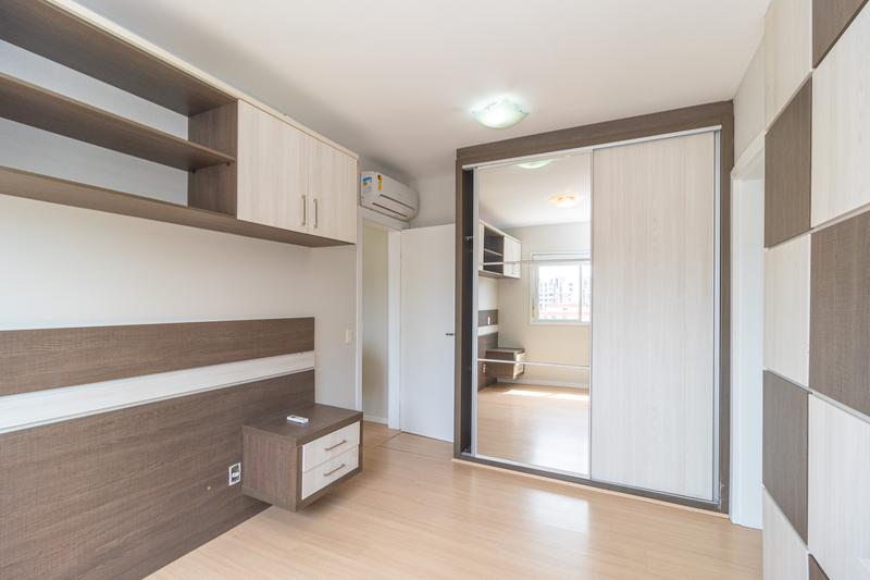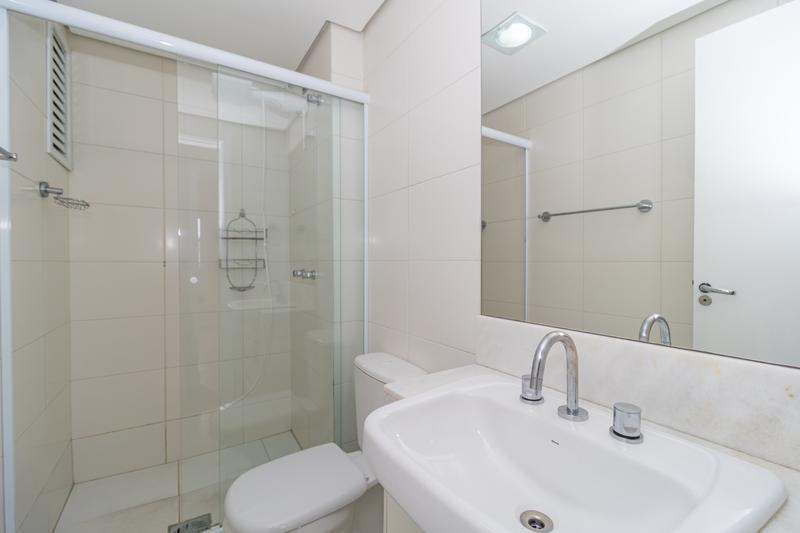 – 2 quartos, sendo 1 suíte com armários, painel para Tv, cabeceira com mesa de apoio, ar condicionado, no banheiro com armário, blindex e chuveiro a gás,