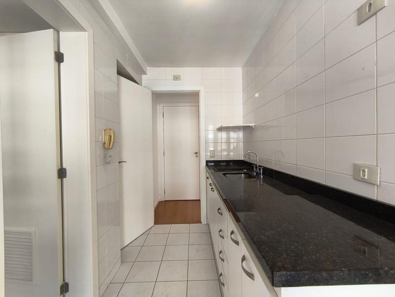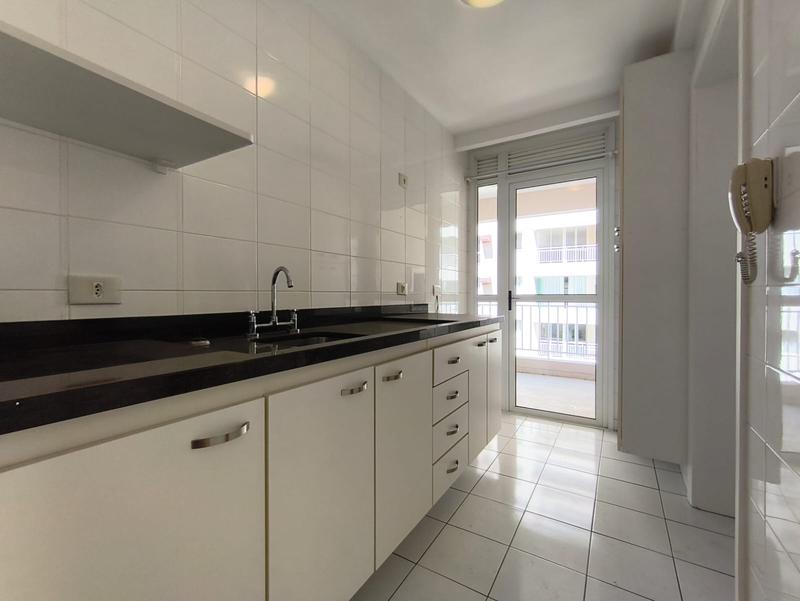 *Cozinha com armários planejados, balcão de pia em granito, acesso a sacada e área de serviço separada.