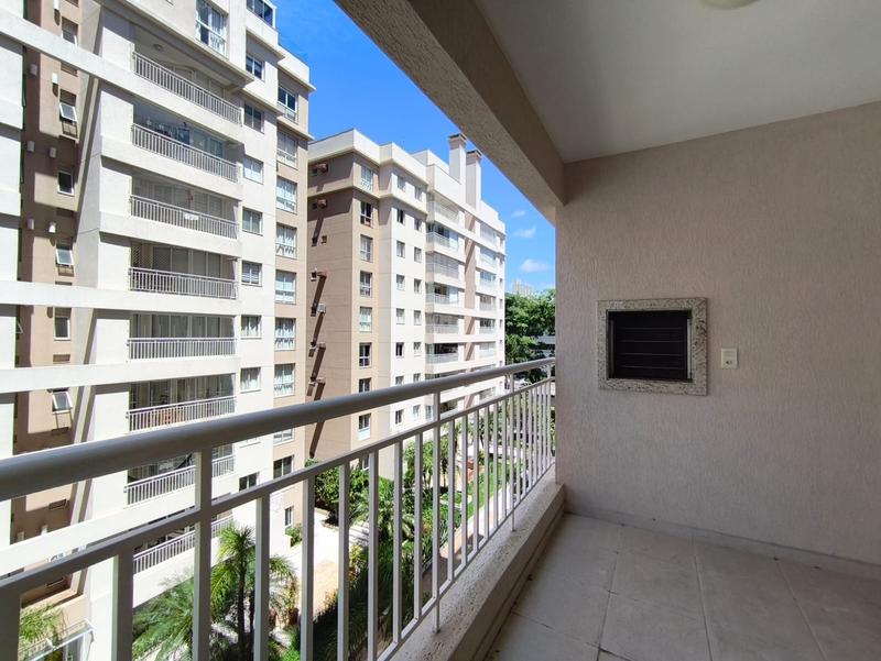 *Sala para dois ambientes com piso laminado e acesso a sacada com churrasqueira, vista para o condomínio.