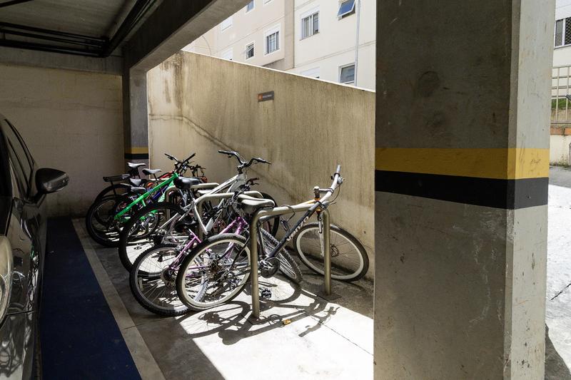 Elevador moderno e bicicletário organizado para suporte operacional aos moradores