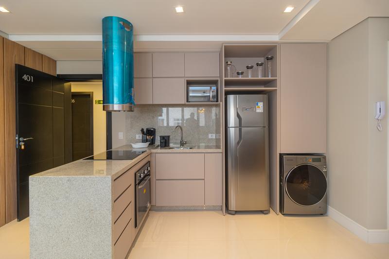 – Lavanderia integrada, com máquina lava e seca embutida e armário planejado;