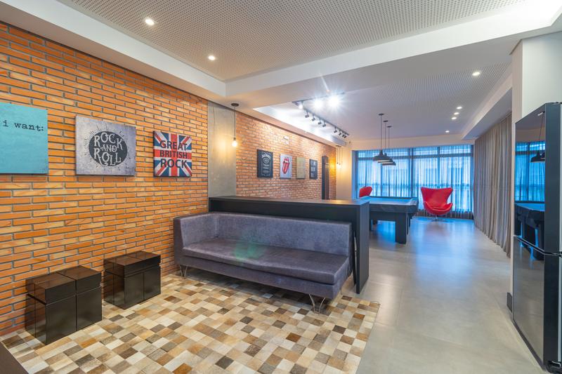 A área social é acolhedora e moderna, composta por sala de estar e jantar integradas, totalmente mobiliadas, com ar-condicionado, lavabo e espaço dedicado para home office. A integração com a sacada garante ótima ventilação e luminosidade natural ao ambiente.