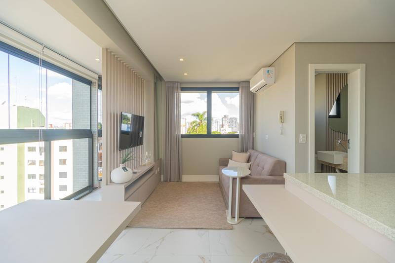 Em primeira locação, este apartamento mobiliado combina design contemporâneo, integração de ambientes e excelente iluminação natural, no bairro São Francisco.