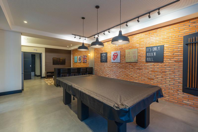 A área social é acolhedora e bem distribuída, composta por sala de estar e jantar integradas, totalmente mobiliadas, com ar-condicionado e lavabo. A bancada para home office complementa o ambiente, oferecendo praticidade para o dia a dia. A sacada amplia a sensação de espaço e garante ventilação e luminosidade aos ambientes.