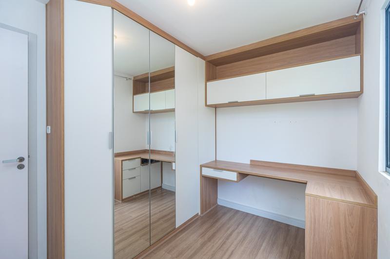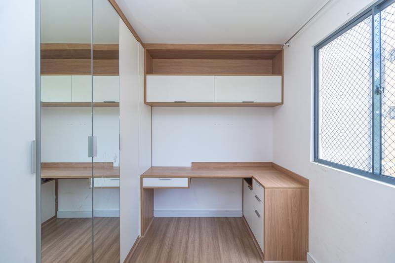 – 2 Quartos, um deles com armário planejado, bancada para estudos, e espaço para cama de solteiro, outro com armários planejados e espaço para cama de casal.