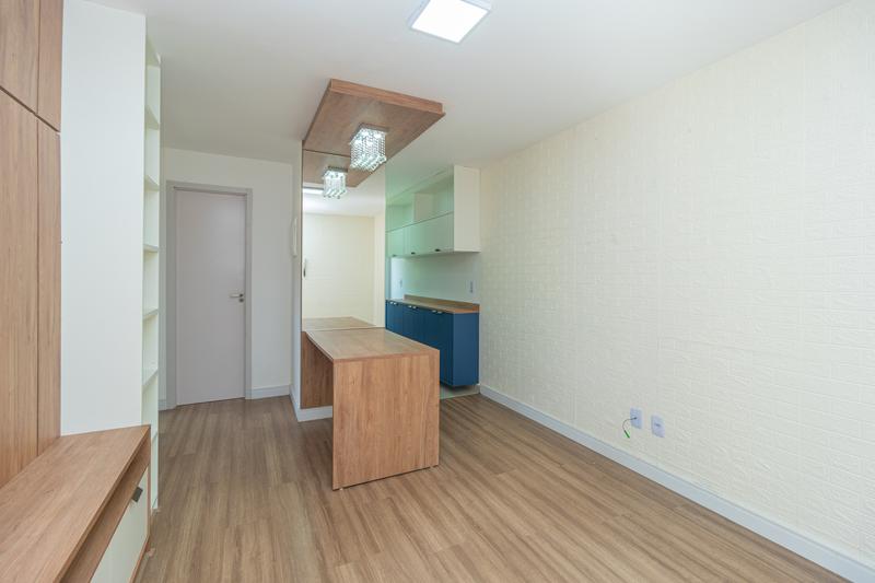 – Sala para 2 ambientes, possui rack e painel para TV, mesa embutida,