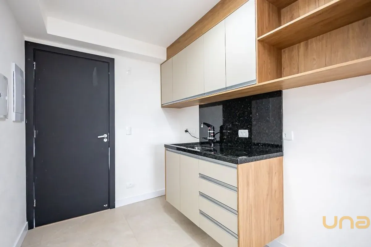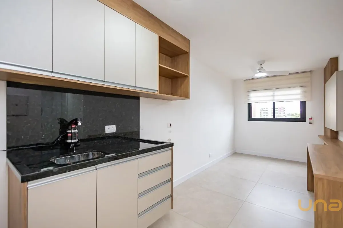 – Cozinha com armários, bancada em granito e torneira elétrica,