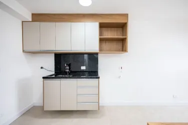 – Cozinha com armários, bancada em granito e torneira elétrica,