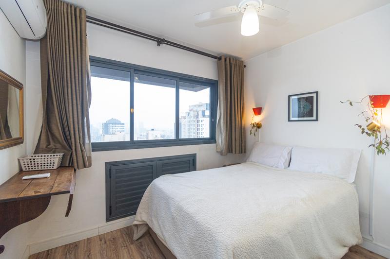 – Ambiente do quarto, possui uma cama box de casal, armário e ar condicionado,